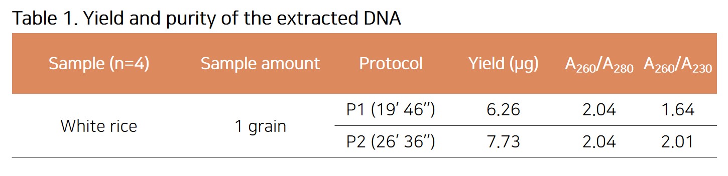 백미 1톨에서 쉽고 빠르게 DNA를 추출할 수 있도록 설계 및 개발되었습니다.