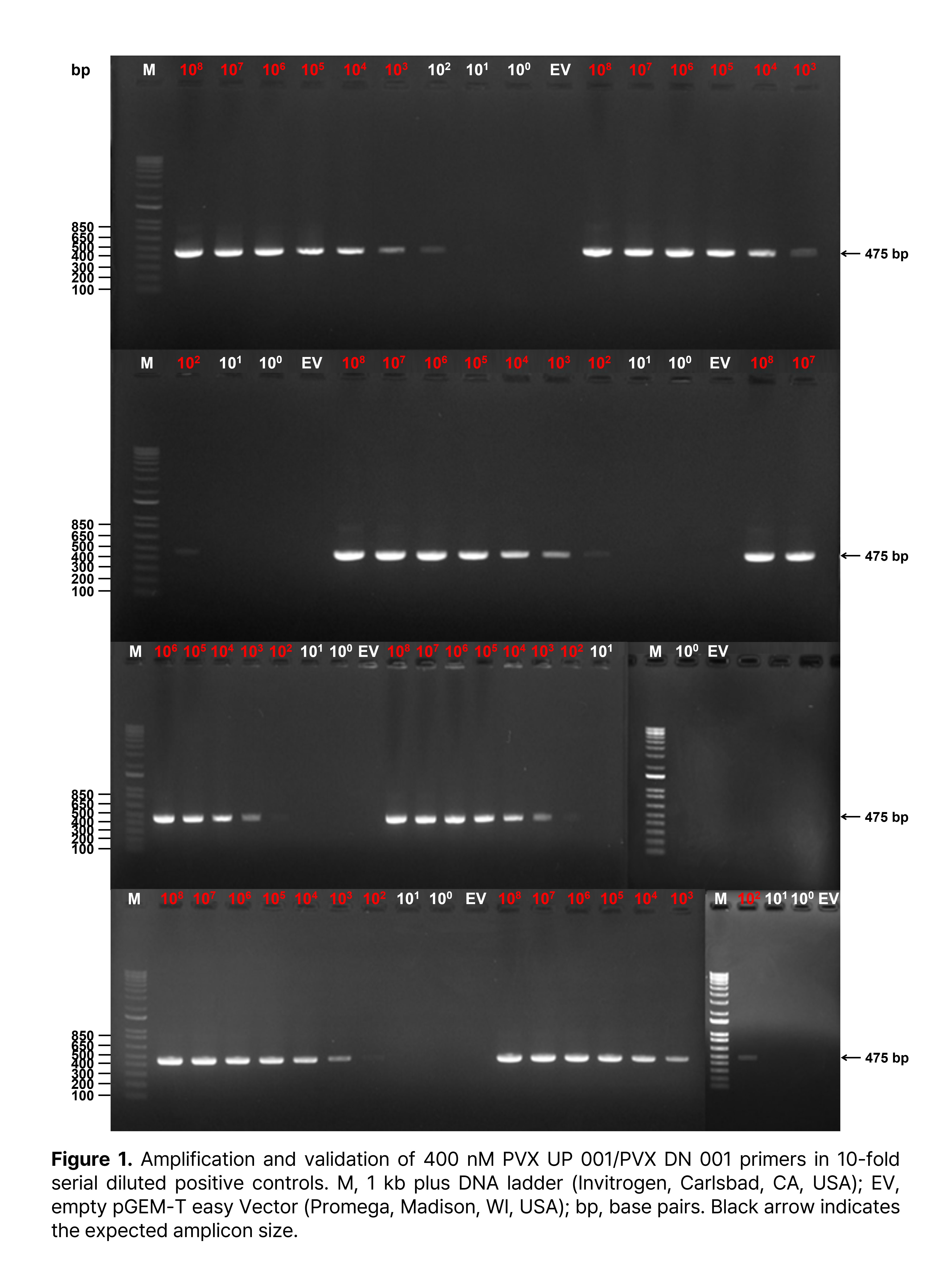 본 키트의 분석 결과는 아가로스 겔 전기영동(agarose gel electrophoresis)을 통해 확인할 수 있습니다.