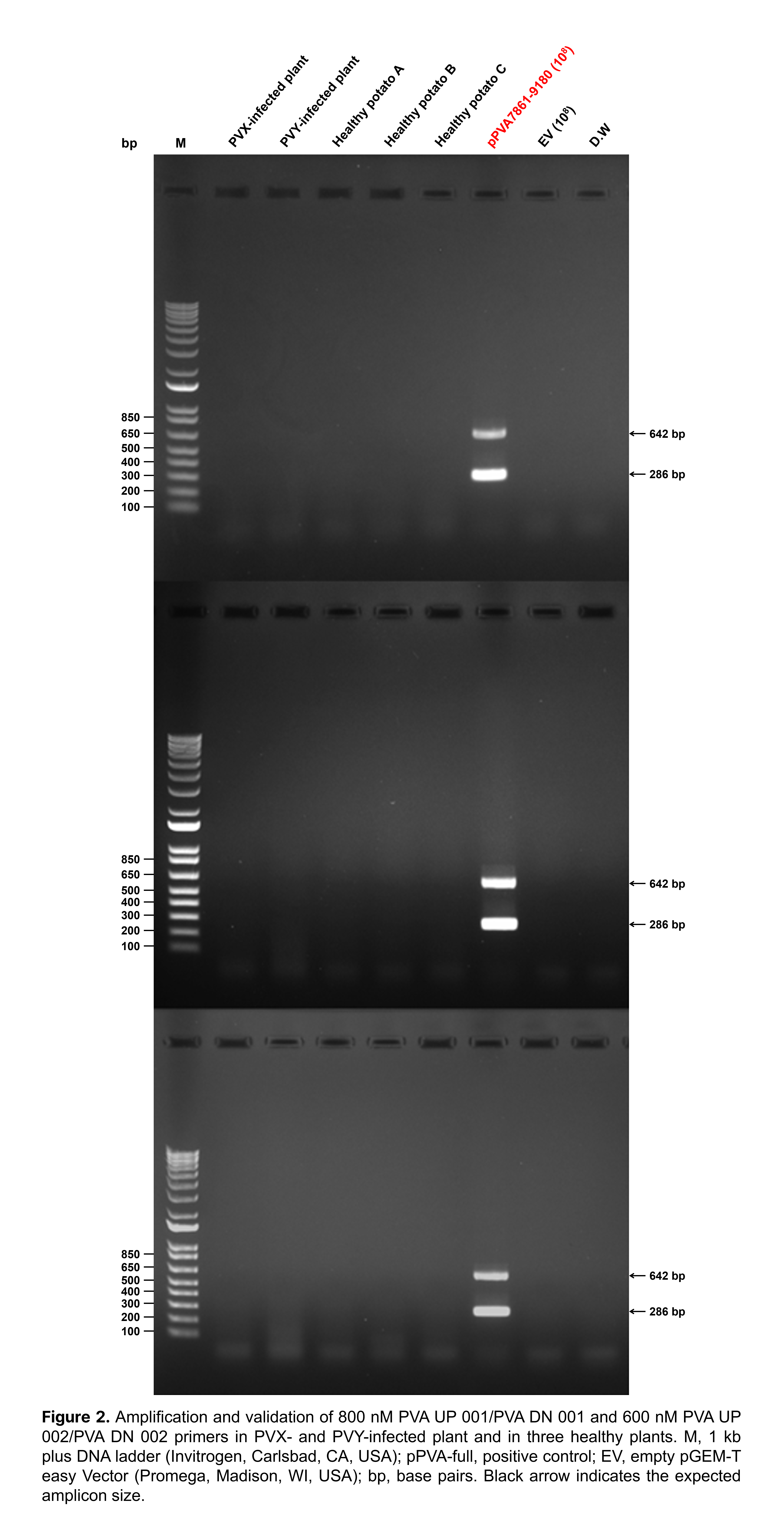 감자 바이러스 A(potato virus A, PVA) 유전체 내 두 개의 타깃 영역을 동시에 증폭·검출하는 multiplex PCR 진단 키트입니다.