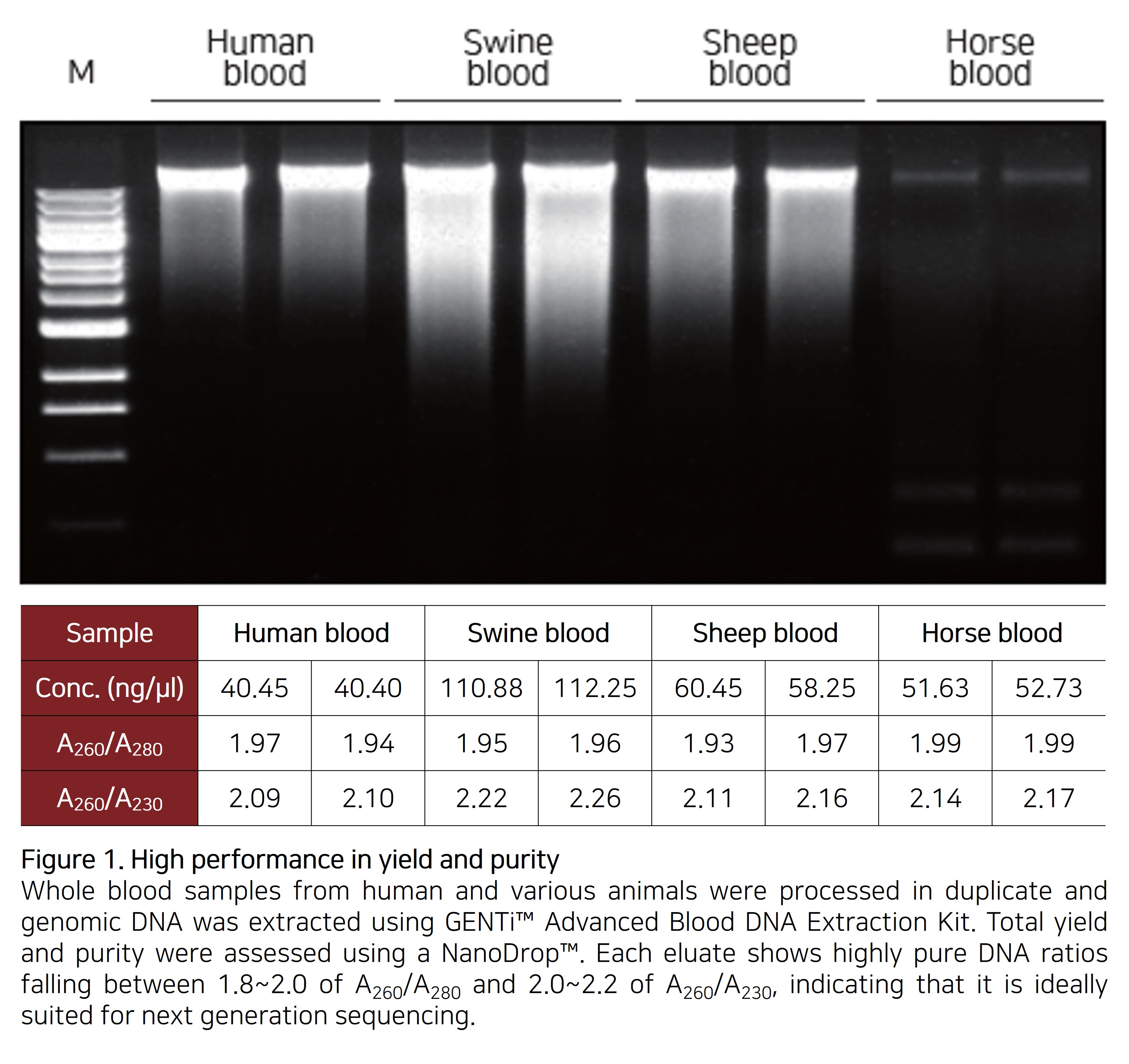GENTi™ Advanced Blood DNA Extraction Kit의 사용자 친화적인 설계 및 디자인, 편리한 자동화 기능을 통해 고품질의 genomic DNA를 안정적으로 추출할 수 있으며,
