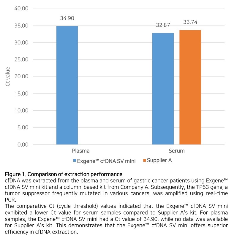 Exgene™ cfDNA SV mini is designed for efficient extraction of circulating DNA from plasma, serum and urine. The optimal combination of buffers and unique GeneAll spin-column enables the extraction of a sufficient amount of cfDNA from starting sample volumes as small as 300 μl. The extracted DNA is suitable for a wide range of down-stream applications, such as PCR and qPCR.