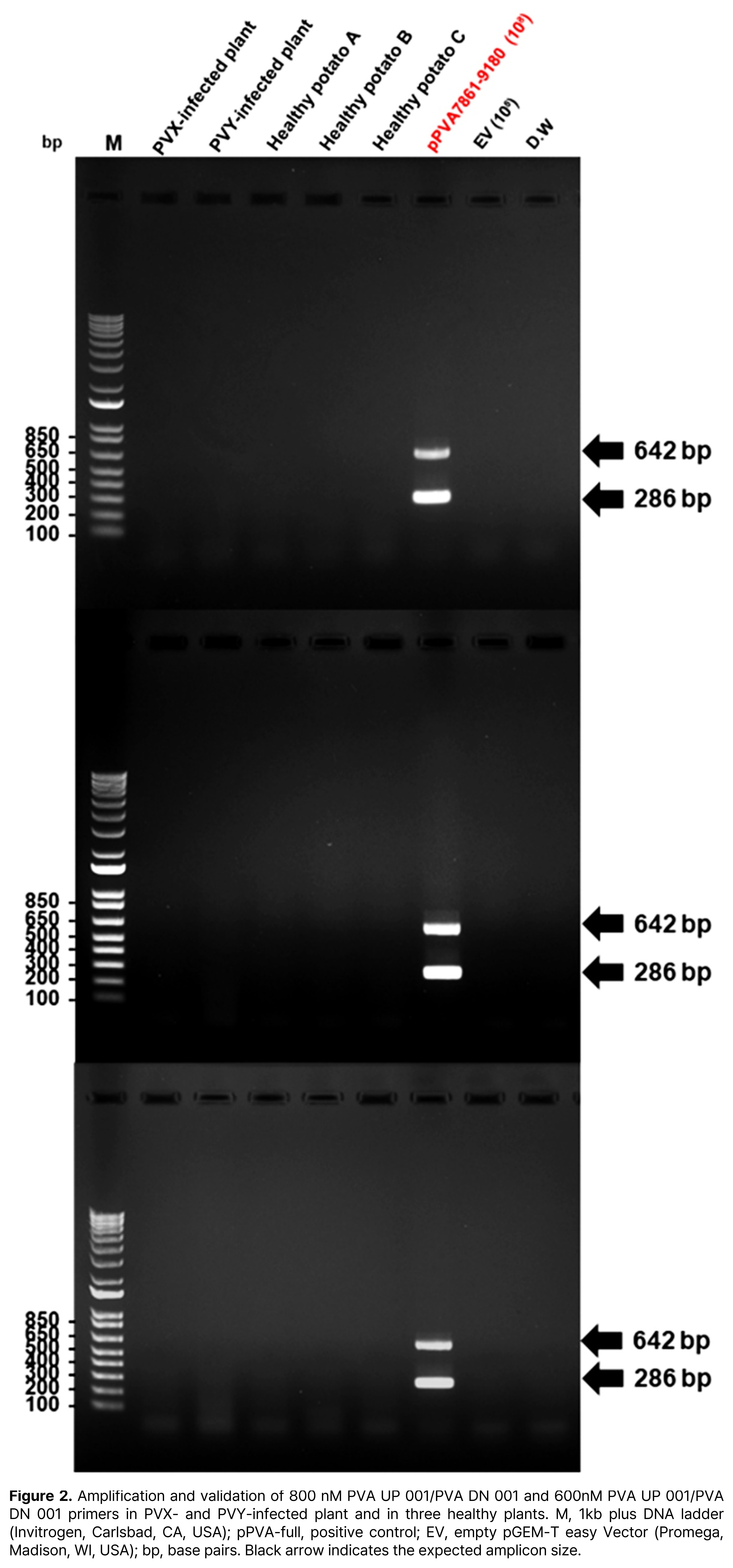 감자 바이러스 Y (Potato virus Y, PVY)와 감자 actin 유전자를 동시에 증폭·검출하는 multiplex PCR 진단 키트입니다.